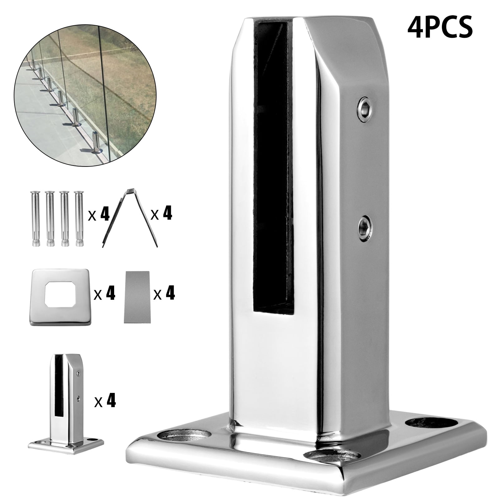 Vevor Glass Railing Clamp 4pcs 3 8x3 8x6 3 Inch 304 Stainless Steel For Glass Thickness 3 10 8 Mm To 1 2 12 Mm Balcony Garden Deck Handrail Stair Sliver Walmart Com